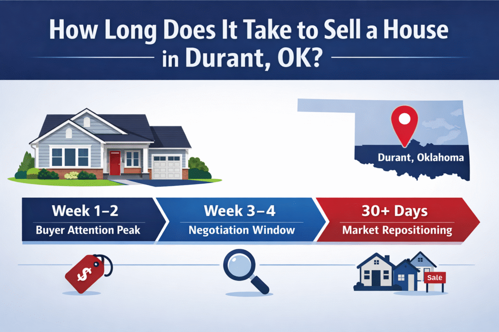 In my experience working in Durant and across the Lake Texoma corridor, the first two to three weeks after a home launches are the most important part of the timeline. That early window is when the most motivated buyers are actively watching new listings. If strong activity appears early, negotiations usually follow. If that window passes quietly, the selling process often becomes slower and more strategic.